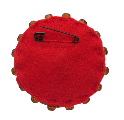 Hnědá korálková brož s vintage knoflíkem. Hodí se na kabát nebo k sepnutí šátku. Sluší podzimnímu typu. Doplňte ji náušnicemi ze stejných korálků.