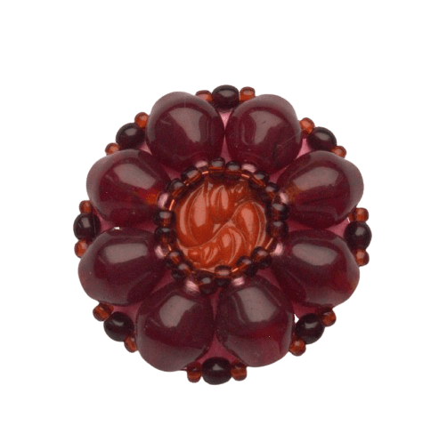 Hnědá korálková brož. Hodí se na klopu sáčka nebo na svetřík. Pořiďte si k ní i náušnice nebo náramek ze stejných korálků.
