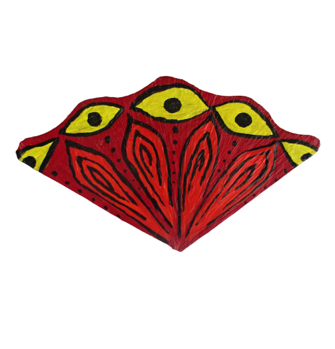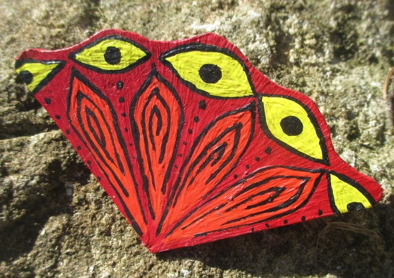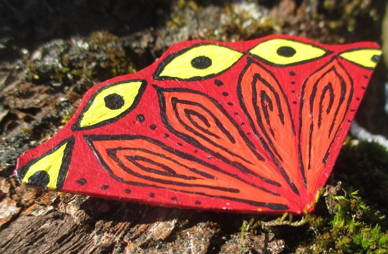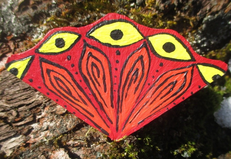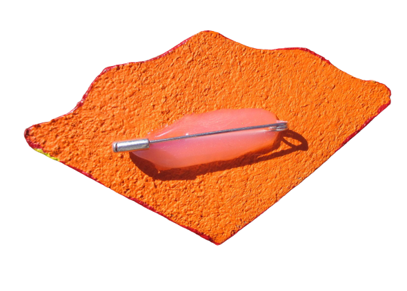 Brož z kůže paví chvost. Veselá brož se hodí na klopu sáčka nebo na šaty. Můžete ji doplnit náušnicemi se stejným motivem.