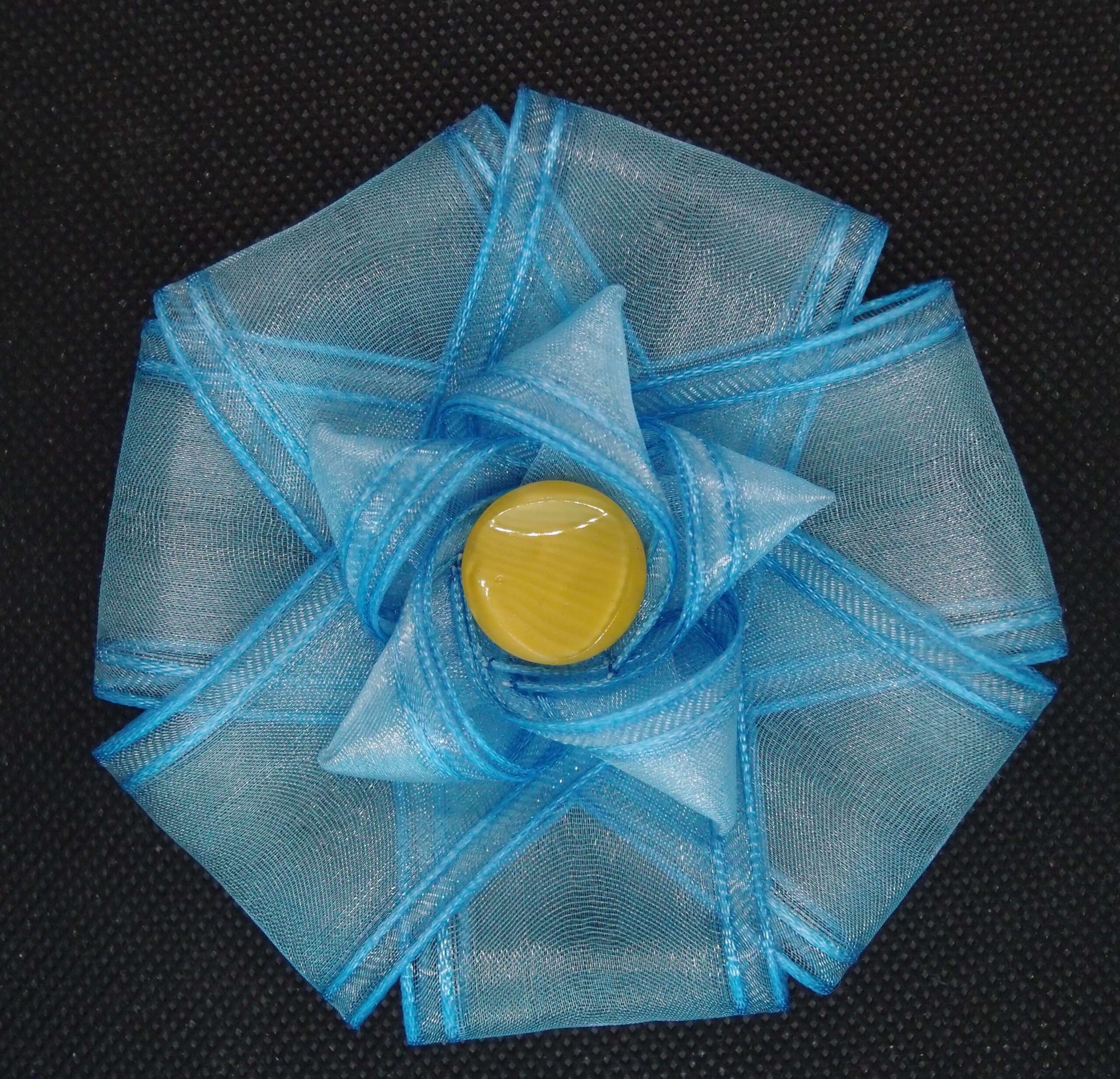 ✨ Jemná brož z průsvitné modré stuhy