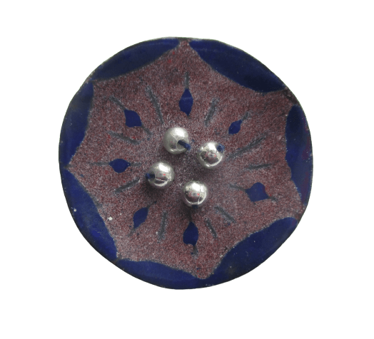 Smaltovaná brož fialová květina. Mírně nepravidelně zvednuté okraje brože a korálky ve středu vytvářejí plasticky efekt. Barvy sluší zimnímu typu. Brož vynikne na oblečení světlé barvy. Můžete ji doladit náušnice ve stejných barvách.