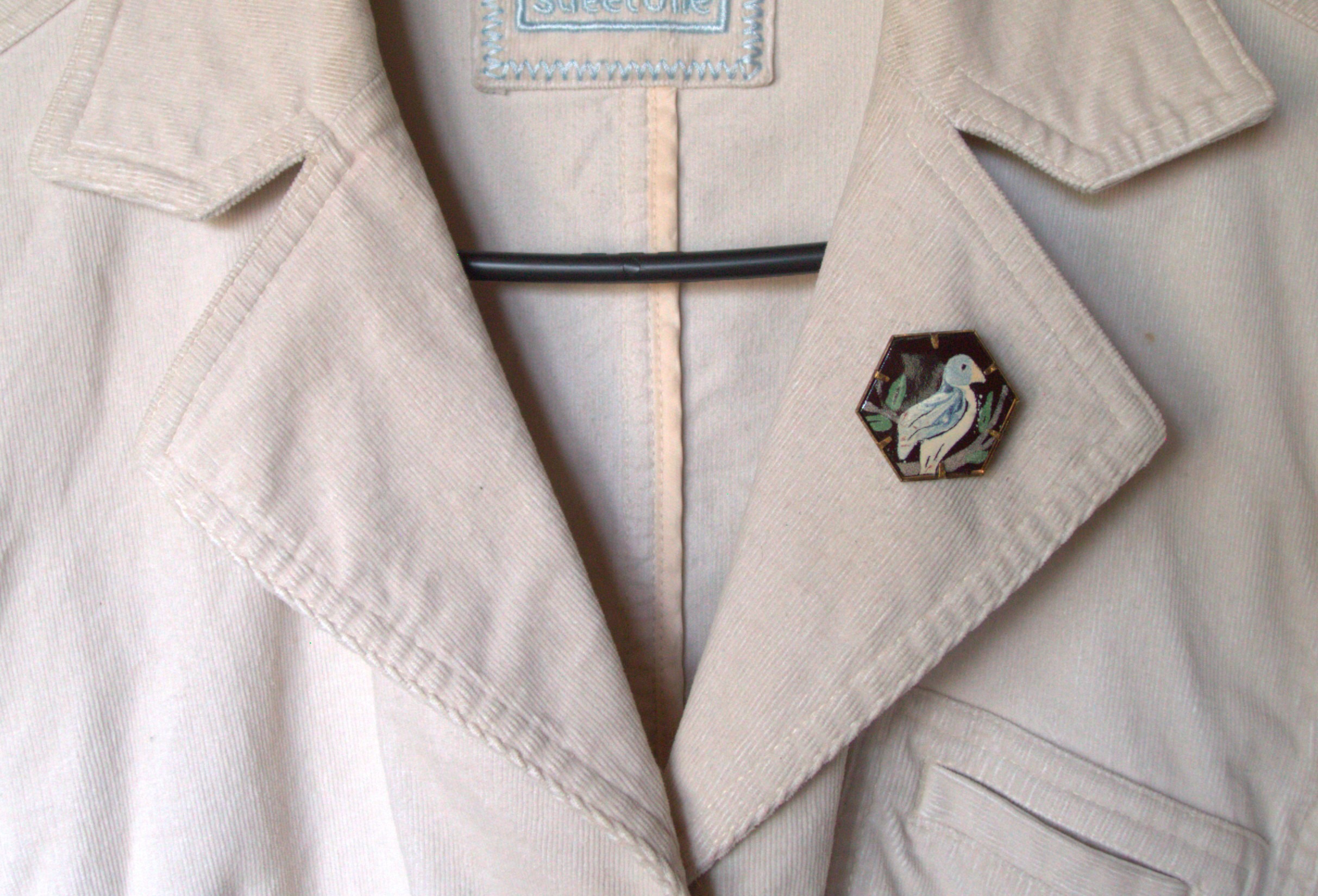 Smaltovaná brož s modrou holubicí