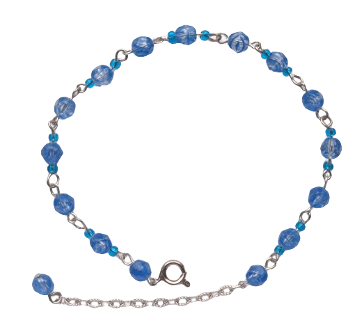 Modrý korálkový náramek. Hodí se k letním šatům. Délku lze upravit. Doplňte je broží nebo náušnicemi ze stejných korálků.
