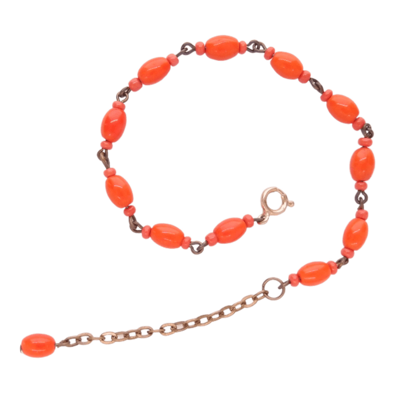 Oranžový korálkový náramek. Šperk z korálků v sytě oranžovém odstínu dodá vašemu outfitu radostnou a živou energii. Vynikne samostatně, ale nejvíce zazáří ve sladěné kombinaci s náušnicemi a oděvní sponou na šátek ze stejných korálků.