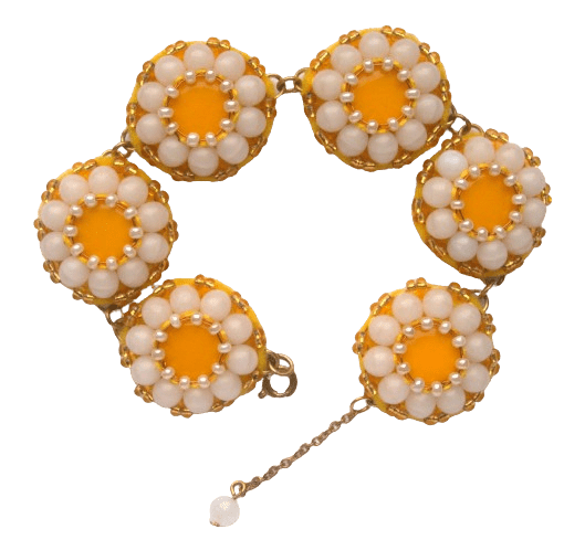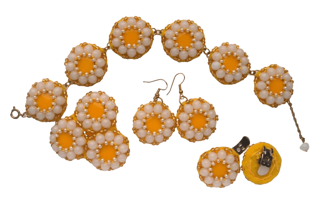 Žlutá korálková souprava. S výraznými šperky inspirovanými květinami doslova zazáříte.