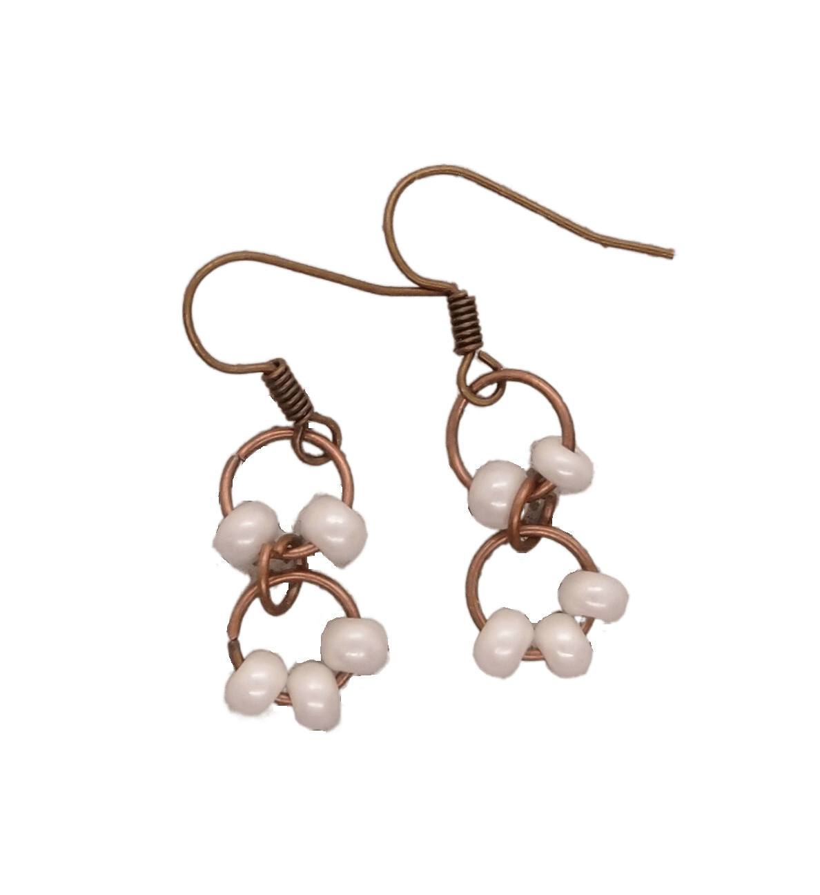 Béžové korálkové náušnice. Tyto elegantní korálkové náušnice v jemném perleťovém odstínu jsou vytvořeny ze stejných korálků jako na těle vážky, což z nich činí perfektní doplněk k tomuto šperku. Jejich jednoduchý a nadčasový design dodává outfitu lehkost a sofistikovanost, zatímco precizní ruční zpracování zaručuje jedinečný vzhled. Díky neutrální barvě se snadno kombinují s různými styly a příležitostmi. Jsou ideální pro ty, kteří hledají decentní, ale zároveň originální doplněk inspirovaný přírodou.