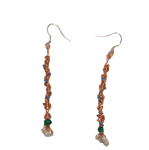Dlouhé ručně vyráběné náušnice z kvalitního měděného drátku zdobené pestrou paletou jarních korálků. Jejich tvar opticky prodlužuje obličej a dodává lehkost a svěžest každému letnímu outfitu. Perfektní volba pro milovnice barev a originálních šperků, které chtějí oživit svůj styl na teplé sezóně.