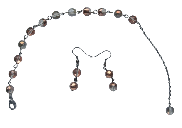 Fialovohnědá korálková souprava. Elegantní náramek a náušnice ze stejných korálků.