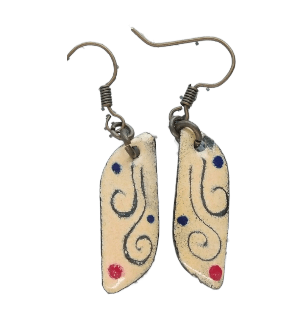 Smaltované béžové náušnice s puntíky. Malé asymetrické náušnice ve smaltovaném béžovém provedení s jemnými puntíky. Jsou ideální volbou pro ty, kdo se smalty teprve začínají, nebo jako milý dárek pro vaše blízké. Díky svému univerzálnímu designu lichotí různým tvarům obličeje a snadno je doplníte náhrdelníkem nebo broží se stejnou kresbou pro dokonalý soulad.