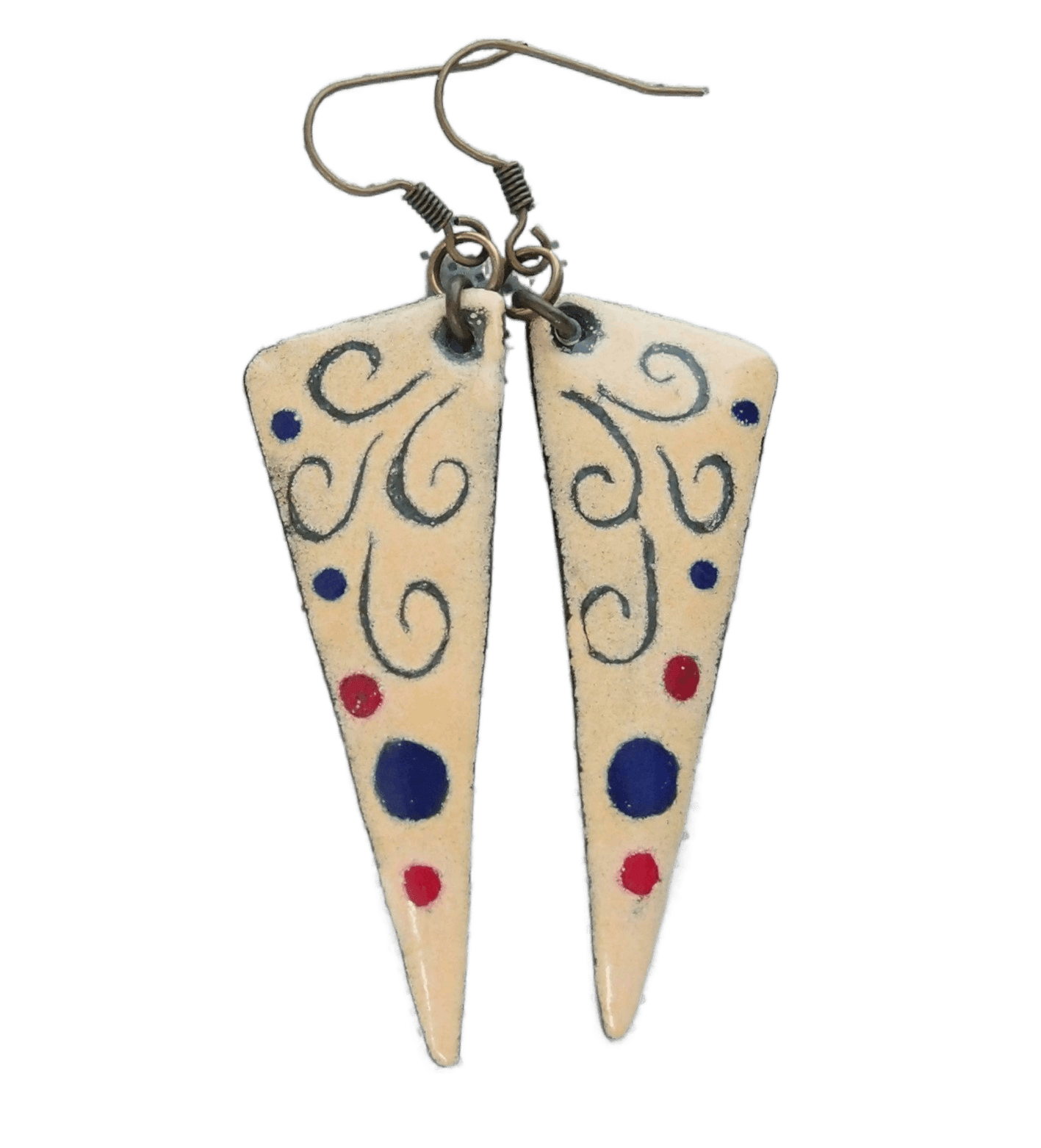 Smaltované béžové náušnice s puntíky. Výrazné smaltované náušnice v jemném béžovém odstínu s hravými puntíky. Jejich větší velikost opticky zeštíhluje obličej a dodává outfitu šmrnc. Ideální letní doplněk, který se snadno kombinuje s lehkými šaty i ležérními outfity. Perfektně ladí s náhrdelníkem nebo broží ze stejné kolekce.