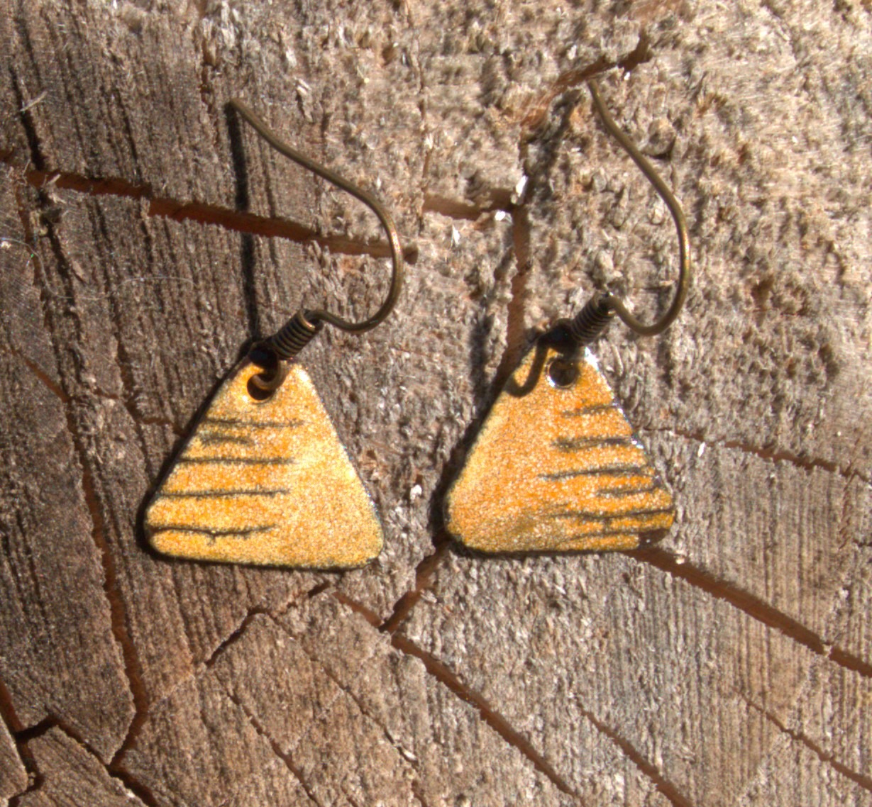 Smaltované béžové náušnice. Vyniknou v tmavých vlasech. Sluší podzimnímu typu. Menší náušnice jsou dobrou volbou pro vás, kdo se smalty začínáte nebo vybíráte dárek. Jsou součástí béžové kočičí soupravy. Můžete je doplnit přívěskem se spící kočkou a váš doprovod kočičí jehlicí do klopy.