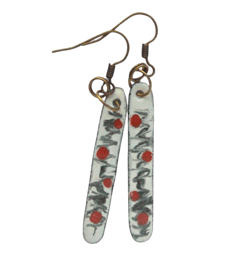 Smaltované náušnice s červenými puntíky. Doplňte svůj styl těmito elegantními smaltovanými náušnicemi s červenými puntíky, které jsou součástí soupravy s červenými hrozny. Tyto úzké náušnice nejen přidají vašemu vzhledu šmrnc, ale také opticky prodlouží obličej, což z nich činí ideální volbu pro ženy, které hledají jemný, ale efektní doplněk. prohlédněte si celou soupravu a vyberte si k náušnicím další ladící kousek.