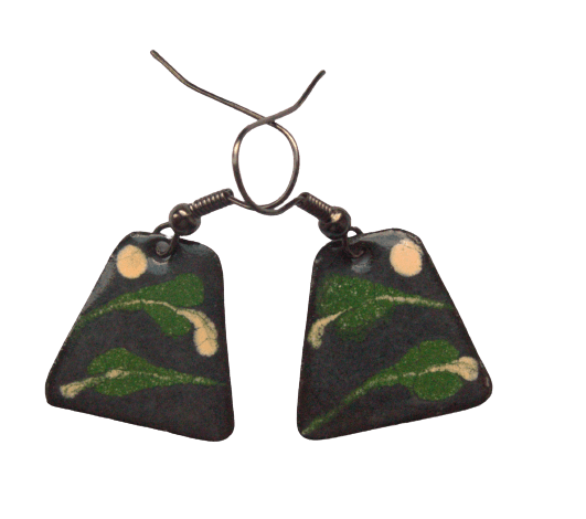 Smaltované náušnice se zelenými lístky