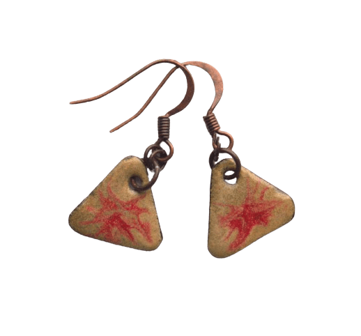 Smaltované pískovočervené náušnice. Hodí se pro ty, kdo se smalty začínají nebo vybírají dárek. Sluší různým tvarům obličeje.