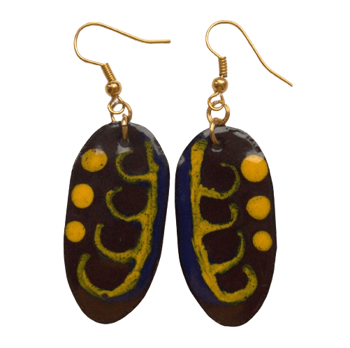 Smaltované podzimní náušnice. Jsou určené pro milovnice velkých náušnic. Budou ladit s vašimi zlatými šperky. Doplňte je přívěskem nebo broží se stejnou kresbou.