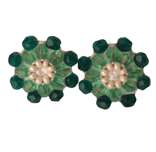 Zelenkavé korálkové náušnice. Drobné puzetky slušící jarnímu typu. Dodávám je s gumovými zarážkami. Doplňte je náramkem nebo broží ze stejných korálků.