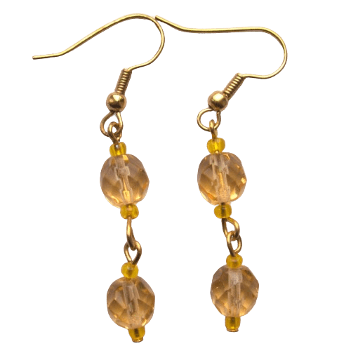 Žluté korálkové náušnice. Budou ladit s vašimi zlatými šperky. Vyberte si k nim brož, sponku nebo náramek ze stejné soupravy.