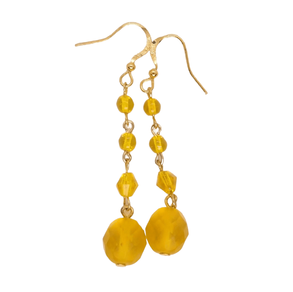 Žluté korálkové náušnice. Září jako letní slunce. Broušené korálky vytvářejí jemný, živý třpyt a jejich delší tvar krásně opticky prodlužuje obličej. Jsou ideální k letním outfitům, lehkým šatům, vzdušným halenkám i bohémskému stylu. Díky teplému odstínu žluté skvěle ladí se zlatými šperky, takže je snadno začleníte do svého oblíbeného looku. Můžete je doplnit i oděvní sponou na šátky ve stejném stylu.