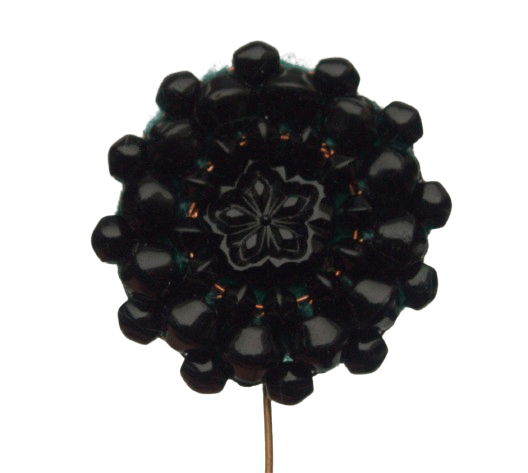 Černá korálková jehlice do klopy. Dobře ladí s dalšími doplňky. S Vaším dámským doprovodem se můžete sladit šperky ze stejné soupravy.