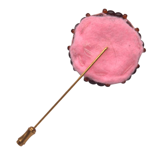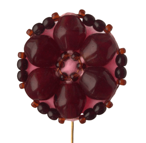 Hnědá korálková jehlice do klopy. Je součástí větší soupravy šperků a doplňků,která se hodí pro zvláštní příležitosti.