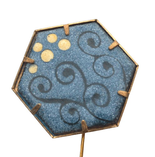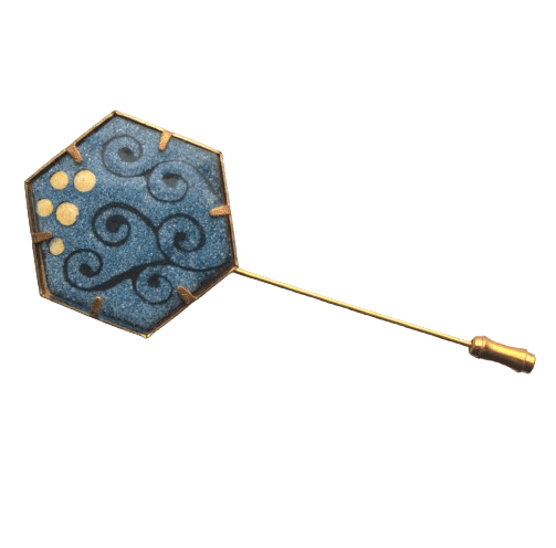Modrá smaltovaná jehlice do klopy. Hodí se k černému či šedému saku. Smalt je v lůžku mechanicky uchycený.