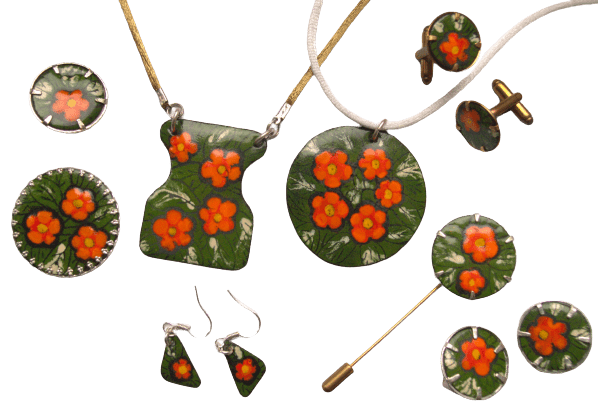Smaltovaná jehlice do klopy s jarními květy. Výrazný pánský doplněk. Hodí se pro slavnostní příležitosti, kdy se můžete se svým doprovodem sladit pomocí šperků ze stejné kolekce.