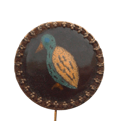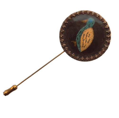 Smaltovaná jehla do klopy s ptáčkem. Sluší podzimnímu typu. Hodí se pro zvláštní příležitosti. Slaďte s s Vaším doprovodem náušnicemi se stejnou kresbou.