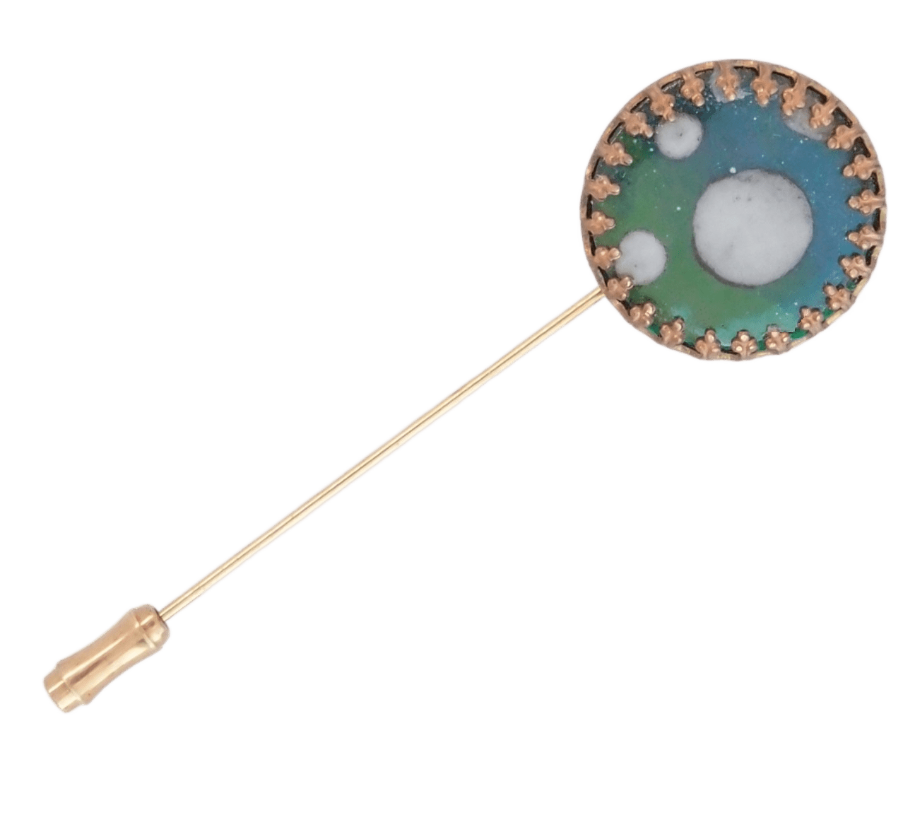 Smaltovaná jehlice s béžovými puntíky. Tato jehlice je stylový a jemný doplněk, který dodá eleganci každému pánskému outfitu. Ideální do klopy saka, skvěle ladí s chladnými tóny a je vhodná pro muže, kteří ocení vkusné detaily. Tento minimalistický kousek přináší sofistikovanost a šmrnc, který se hodí jak pro formální, tak i casual vzhledy. Bižuterní lůžko jí dodává nádech vintage.