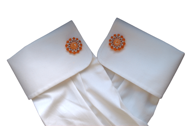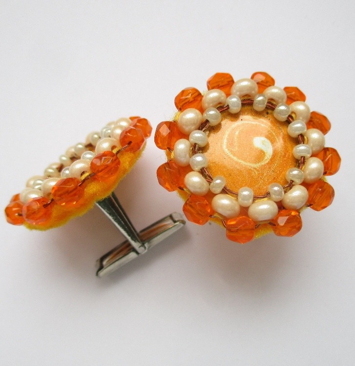 Smaltované manžetové knoflíky orámované skleněnými korálky. Nápadné knoflíky jsou součástí veselé zrzavé kočičí kolekce. Jsou určené pro slavnostní příležitost, kde nechcete splynout s davem.