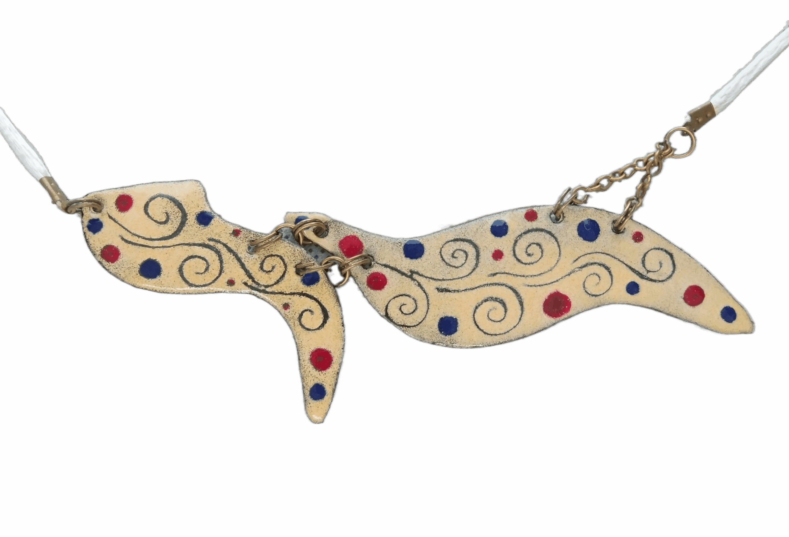 Smaltovaný béžový náhrdelník s puntíky. Asymetrický náhrdelník v originálním tvaru, který upoutá na první pohled. Smaltovaný přívěsek v teplých béžových tónech s jemnými puntíky dodá vašemu outfitu jedinečnost, přesto zůstává elegantní a nadčasový. Skvěle se hodí k minimalistickému oblečení, kde vynikne jeho detailní zpracování. Dokonale doplní brož nebo náušnice ze stejné kolekce.