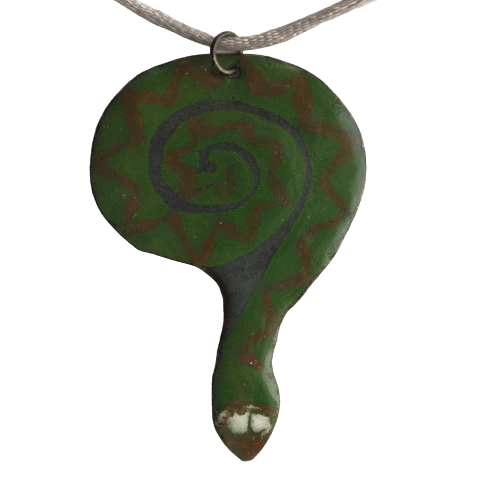 Smaltovaný had. Je navržený k zavěšení na delší šňůrce. Hodí se k šatům i tričku. Dodávám jej se saténovou šňůrkou ladící barvy.