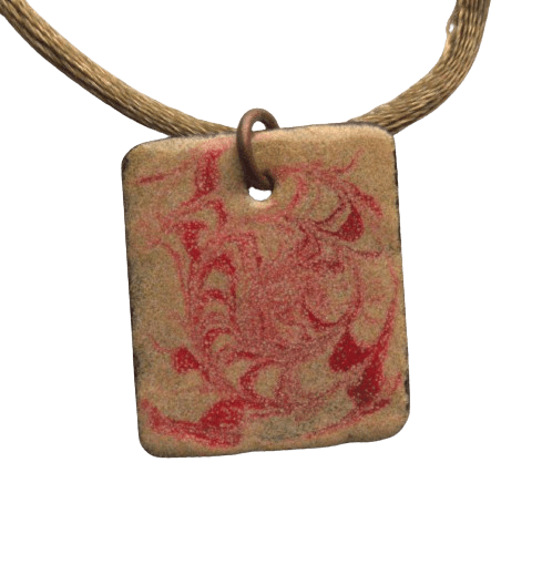 Smaltovaný pískovočervený přívěsek. Hodí se pro každodenní nošení. Výšku zavěšení můžete měnit podle potřeby. Dodávám jej se saténovou šňůrkou ladící barvy. Pořiďte si k nim náušnice ve stejných barvách.