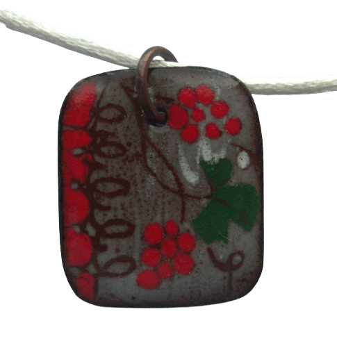 Smaltovaný přívěsek s červenými vinnými hrozny. Tento univerzální šperk je ideální pro každodenní nošení a skvěle se hodí jak k tričku, tak k šatům. Precizní smaltování a detailní provedení dodávají přívěsku jemný lesk a jedinečný vzhled. Buďte elegantní a stylová v každé situaci s tímto krásným přívěskem.