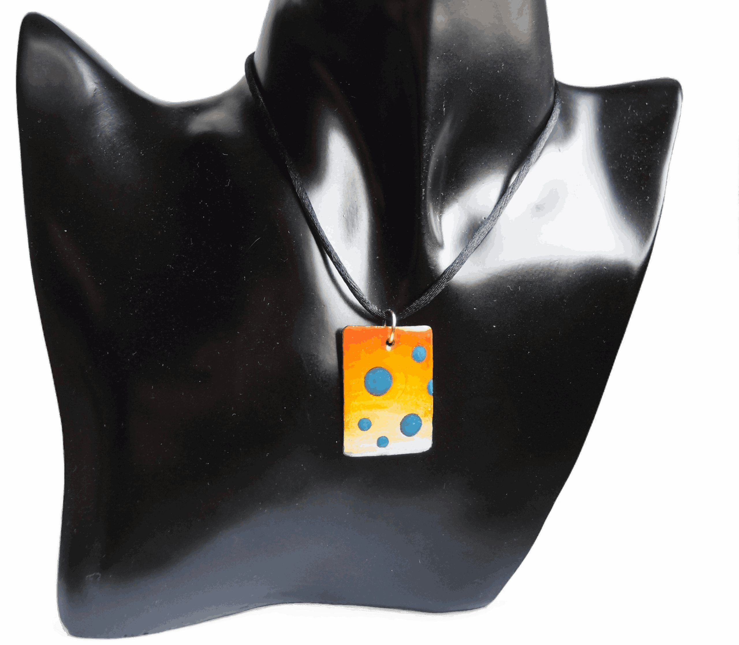 Smaltovaný přívěsek s modrými puntíky, ruční výroba, nastavitelná délka zavěšení