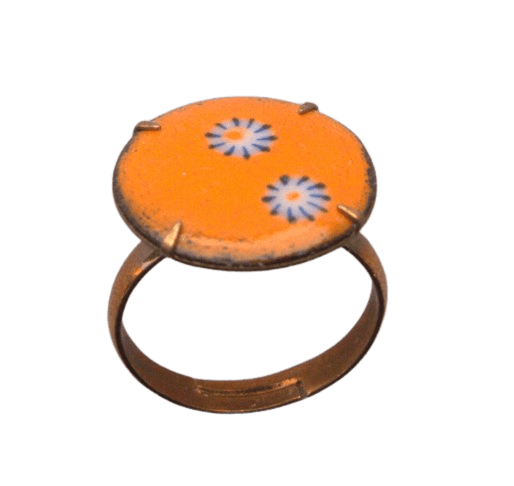 Oranžový smaltovaný prsten. Obroučka je má nastavitelnou velikost. Hodí se k romantickému stylu.