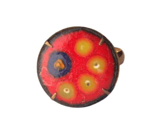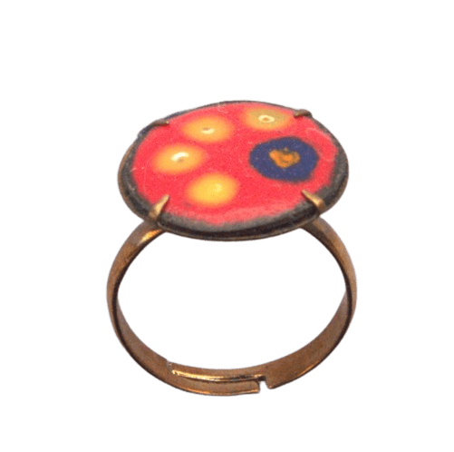 Smaltovaný prsten s puntíky. Hodí se k veselým a hravým outfitům. Velikost je nastavitelná.
