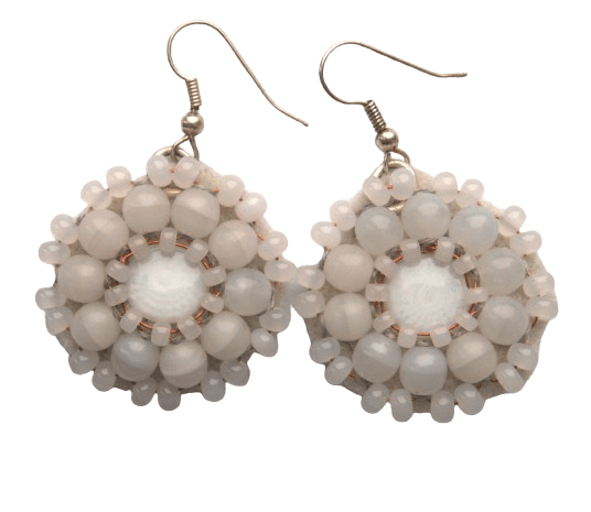 Bílá korálková souprava. Elegantní šperky pro pár. Hodí se k minimalistickému stylu.