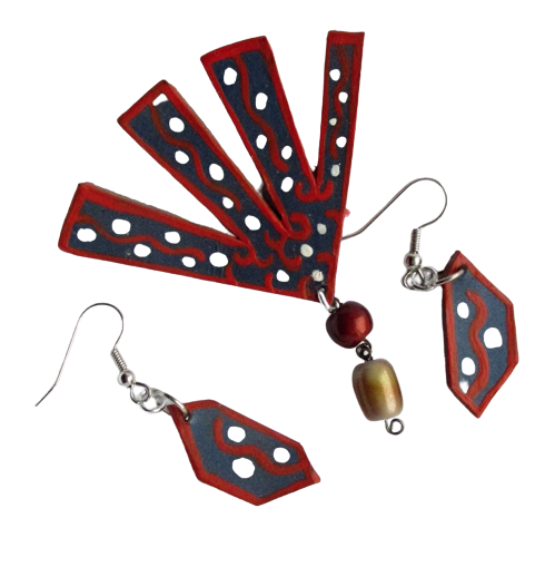 Modrá kožená souprava. Sluší podzimnímu typu. Hodí se pro volnočasové i slavnostnější příležitosti.