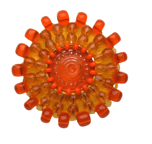 Oranžová korálková brož. Bude ladit s Vašimi zlatými šperky. Vynikne na tmavých šatech. Doplňte ji náramkem nebo náušnicemi ze stejných korálků.