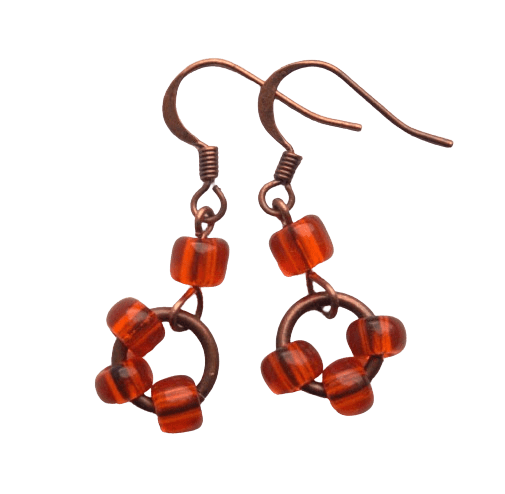 Oranžové korálkové náušnice. Sluší podzimnímu typu. Doplňte je broží nebo náramkem ze stejné soupravy.