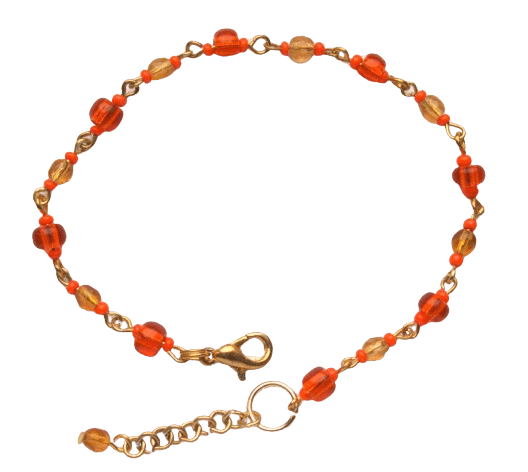 Oranžový korálkový náramek. Délku lze upravit. Hodí se k letním šatům. Doplňte jej náušnicemi , sponkou nebo broží ze stejných korálků.