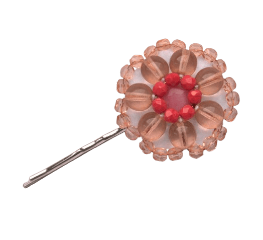 Růžová korálková sponka. Hodí se k romantickým outfitům. Sluší letnímu typu. Doplňte ji broží, náramkem nebo náušnicemi ze stejných korálků.