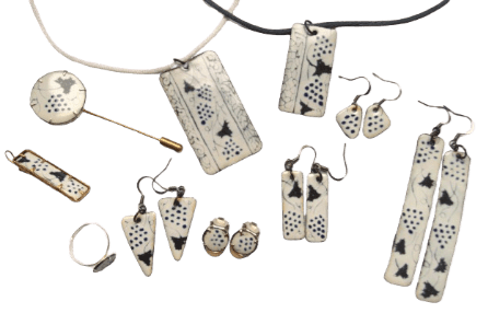 Velká smaltovaná souprava s černými hrozny inspirovaná krojem mělnického folklórního souboru. Vytvořte si vlastní kombinaci šperků pro různé příležitosti.