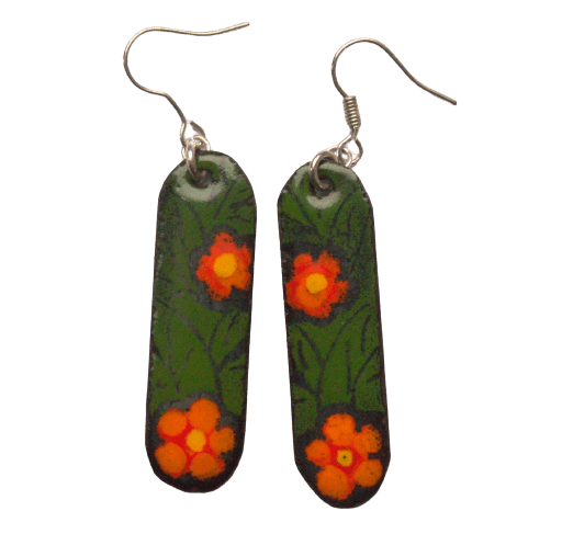 Smaltované náušnice s jarními květy. Hodí se k romantickým a veselým outfitům. Sluší jarnímu typu. Doplňte je přívěskem či broží se stejnou kresbou.