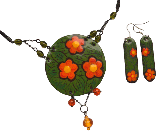 Smaltovaná souprava s jarními květy. Velký výběr různých tvarů a velikostí pro každou příležitost. Sestavte si vlastní kombinaci šperků pro všední den i slavnostní večer.