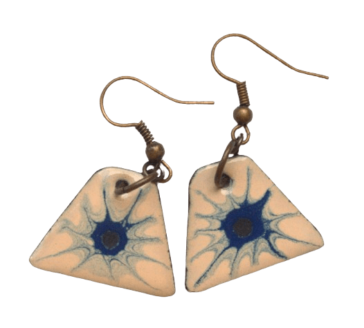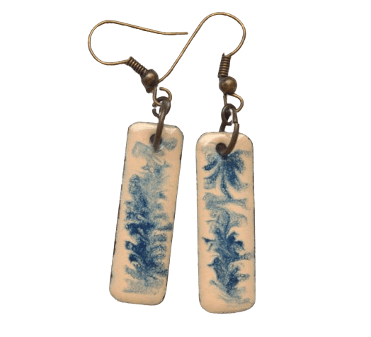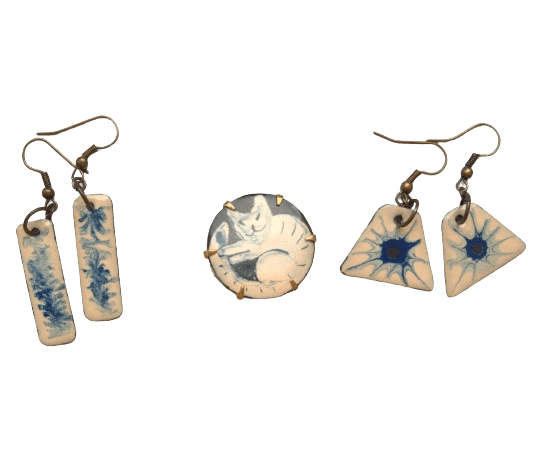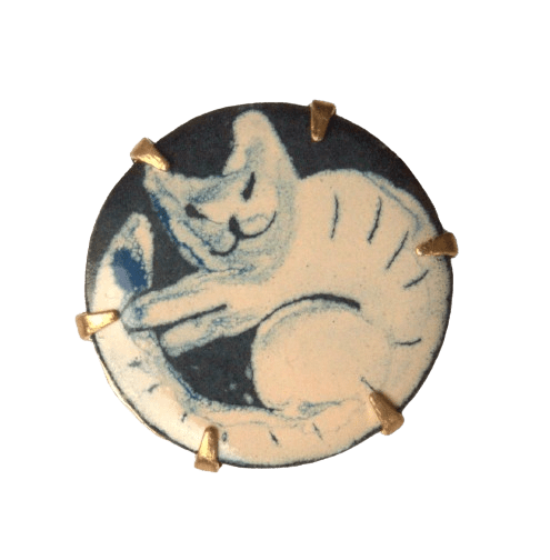 Smaltovaná souprava s modrou kočkou. Jemná kombinace barev se hodí k formálnímu či minimalistickému stylu. Vyberte si k broži ladící náušnice.
