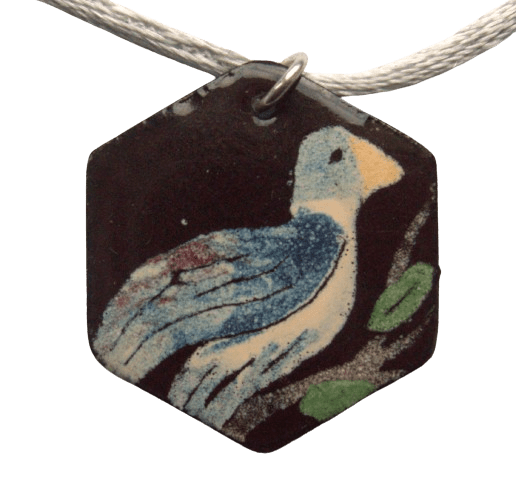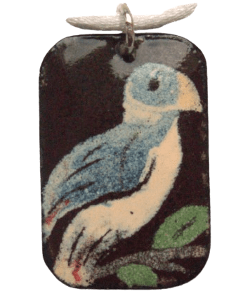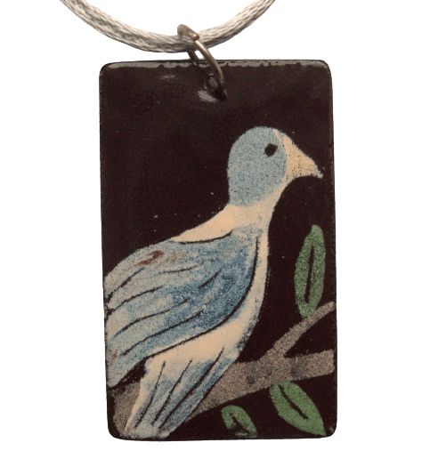 Smaltovaný přívěsek s modrou holubicí. Je navržený na zavěšení na delší šňůrce. Hodí se k formálním i neformálním outfitům. Dodávám jej se saténovou šňůrkou ladící barvy. Doplňte jej náušnicemi ve stejných barvách.