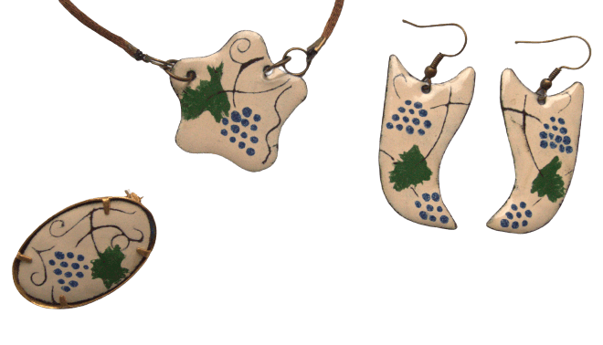 Smaltovaná souprava s modrými hrozny inspirovaná krojem mělnického folklórního souboru. Sestavte si vlastní kombinaci šperků pro různé příležitosti.