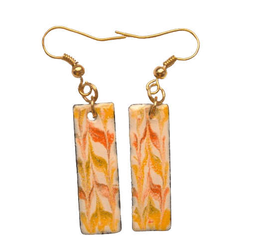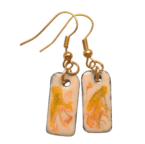 Smaltované zlatobéžové náušnice. Vyniknou v tmavých vlasech. Hodí se pro každou příležitost. Sluší jarnímu typu. Doplňte je sponkou nebo náhrdelníkem ve stejných barvách.