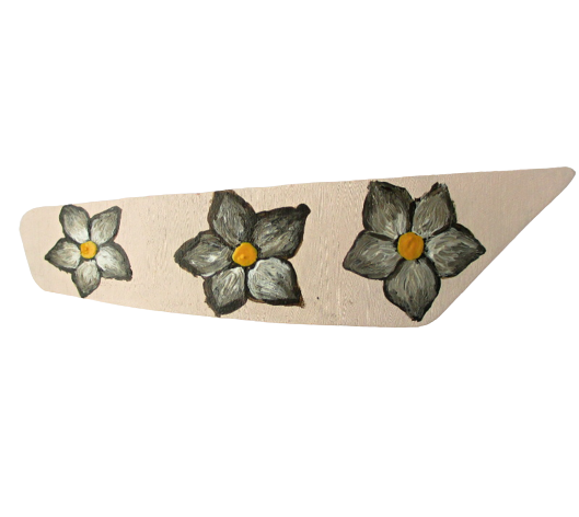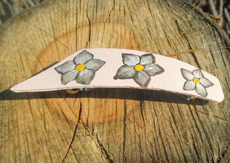 Béžová kožená spona s hnědými květy. Sluší podzimnímu typu. Hodí se k romantickému stylu.